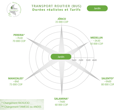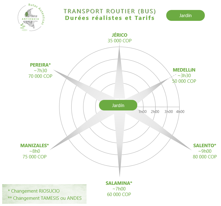 Le temps de transfert routier en Colombie est un piège classique pour les voyageurs non avertis, car les temps annoncés par les applications sont souvent théoriques et ne tiennent pas compte de la réalité du trafic. Les applications GPS ou les compagnies de bus te donneront un temps de référence, mais la réalité du réseau routier colombien (travaux fréquents, passages en ville, trafic parfois dense, et le relief pour les zones montagneuses) allonge souvent la durée finale.